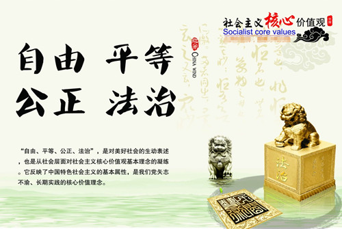 總之,自由、平等、公正、法治是馬克思主義的基本要求,也是中國共產(chǎn)黨人的一貫價(jià)值追求,集中體現(xiàn)了社會(huì)主義的基本社會(huì)屬性和中國特色社會(huì)主義的社會(huì)價(jià)值追求,它們一定會(huì)內(nèi)化為實(shí)現(xiàn)中華民族偉大復(fù)興的強(qiáng)大精神動(dòng)力,一定會(huì)外化為推動(dòng)全面深化改革、全面建成小康社會(huì)的積極行動(dòng).